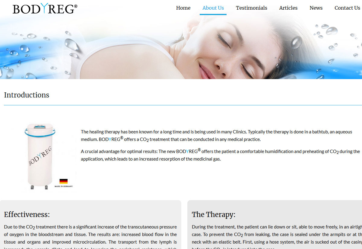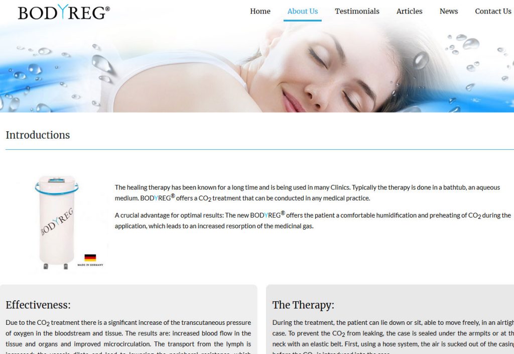 The healing therapy has been known for a long time and is being used in many Clinics. Typically the therapy is done in a bathtub, an aqueous medium. BODYREG® offers a CO2 treatment that can be conducted in any medical practice.