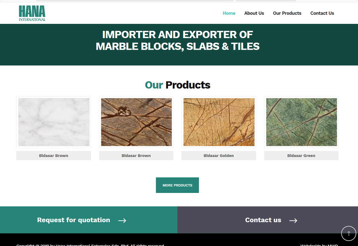 Hana International Enterprise Sdn. Bhd. is fast growing in trading of Marbles and Minerals. It has direct connection with Mines & Quarry owner, Importer and Processors of Best Quality Indian, Italian, Spanish, Turkish Marble, Granite, and Onyx. We boast ourselves as one of the most reputed suppliers of Imported Marble as well as Domestic Marble products that suites the need of our esteemed clients. Our elegant and refined collection of Indian and Imported marbles is available in various finishes and provides a tinge of luxury to home, offices, and projects.